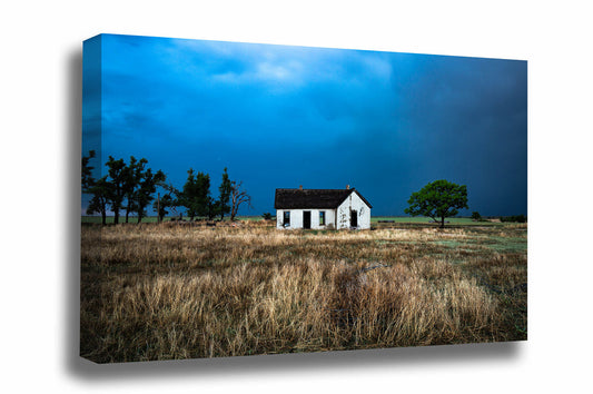 Abandoned House Canvas | Old Homestead Gallery Wrap | Storm Clouds Photography | Oklahoma Wall Art | Rustic Country Decor | Ready to Hang