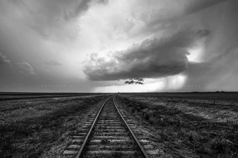 Storm Photography Print | Black and White Picture | Kansas Wall Art | Train Tracks Photo | Railroad Decor | Not Framed