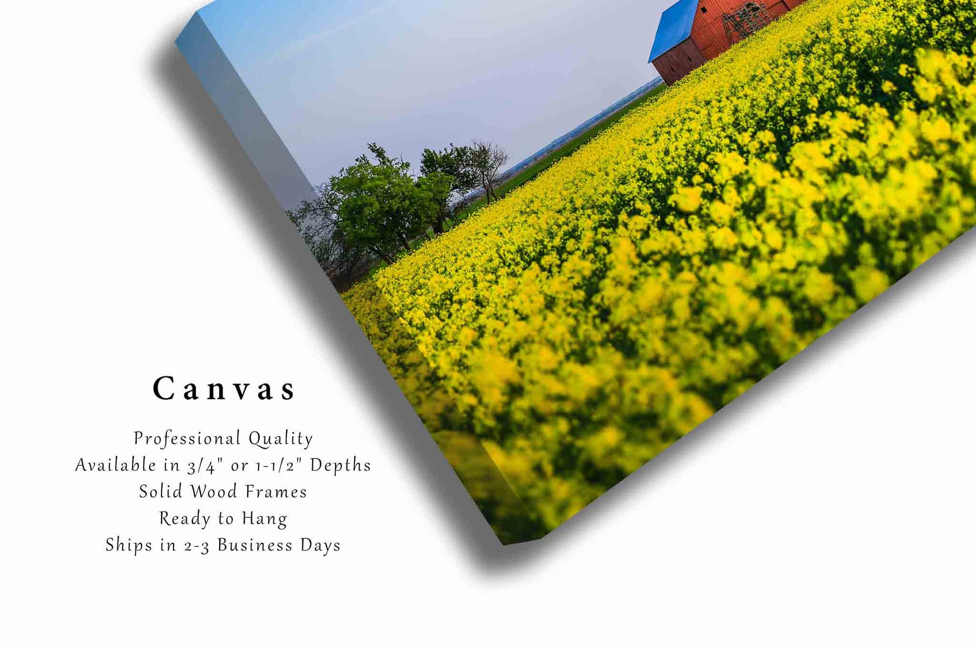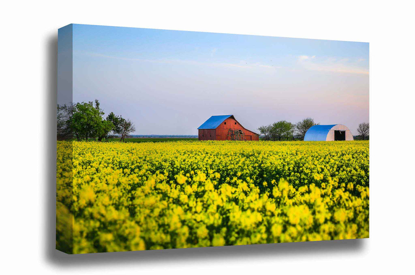 Barn Canvas | Canola Field Gallery Wrap | Farm and Country Photography | Oklahoma Wall Art | Great Plains Decor | Ready to Hang