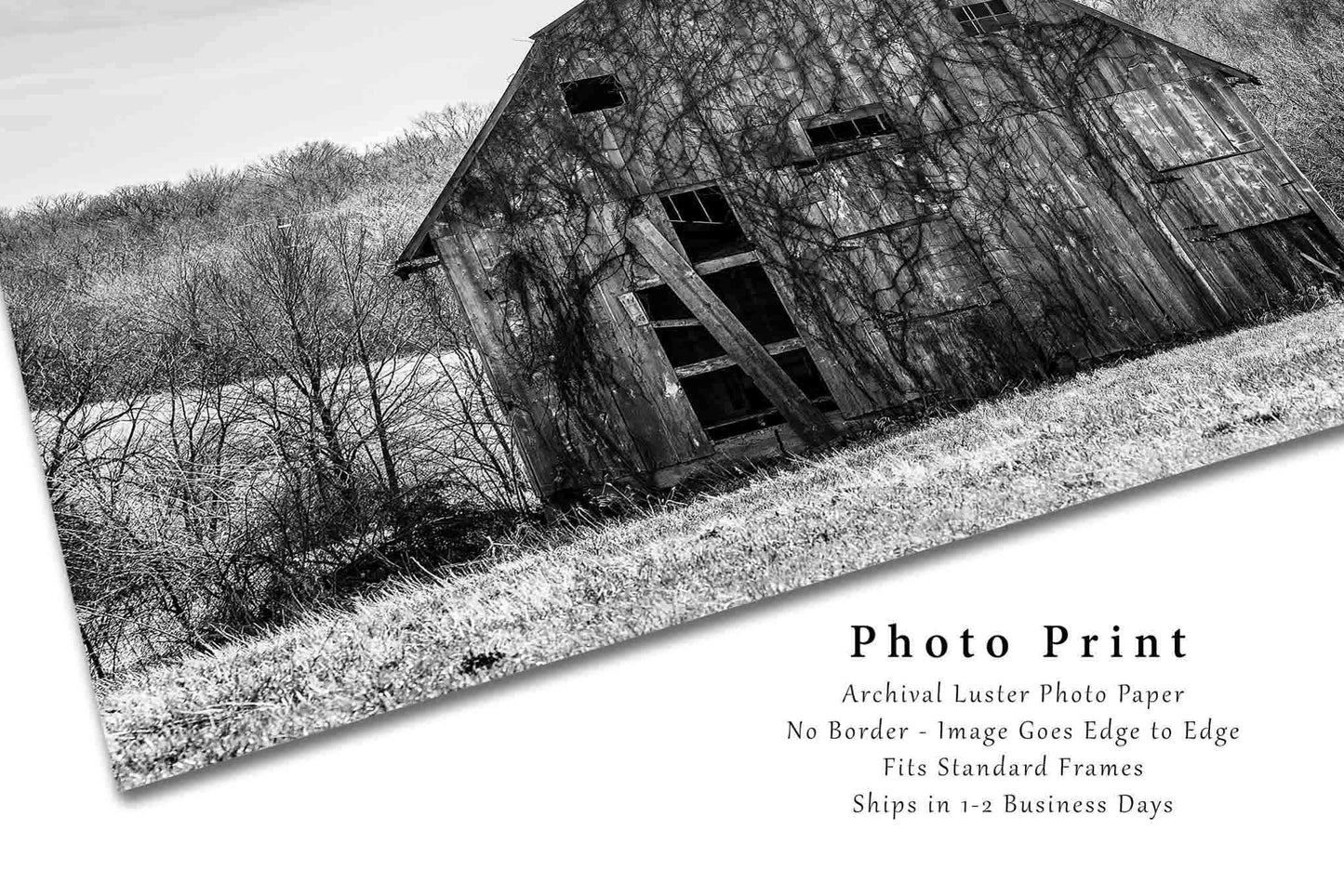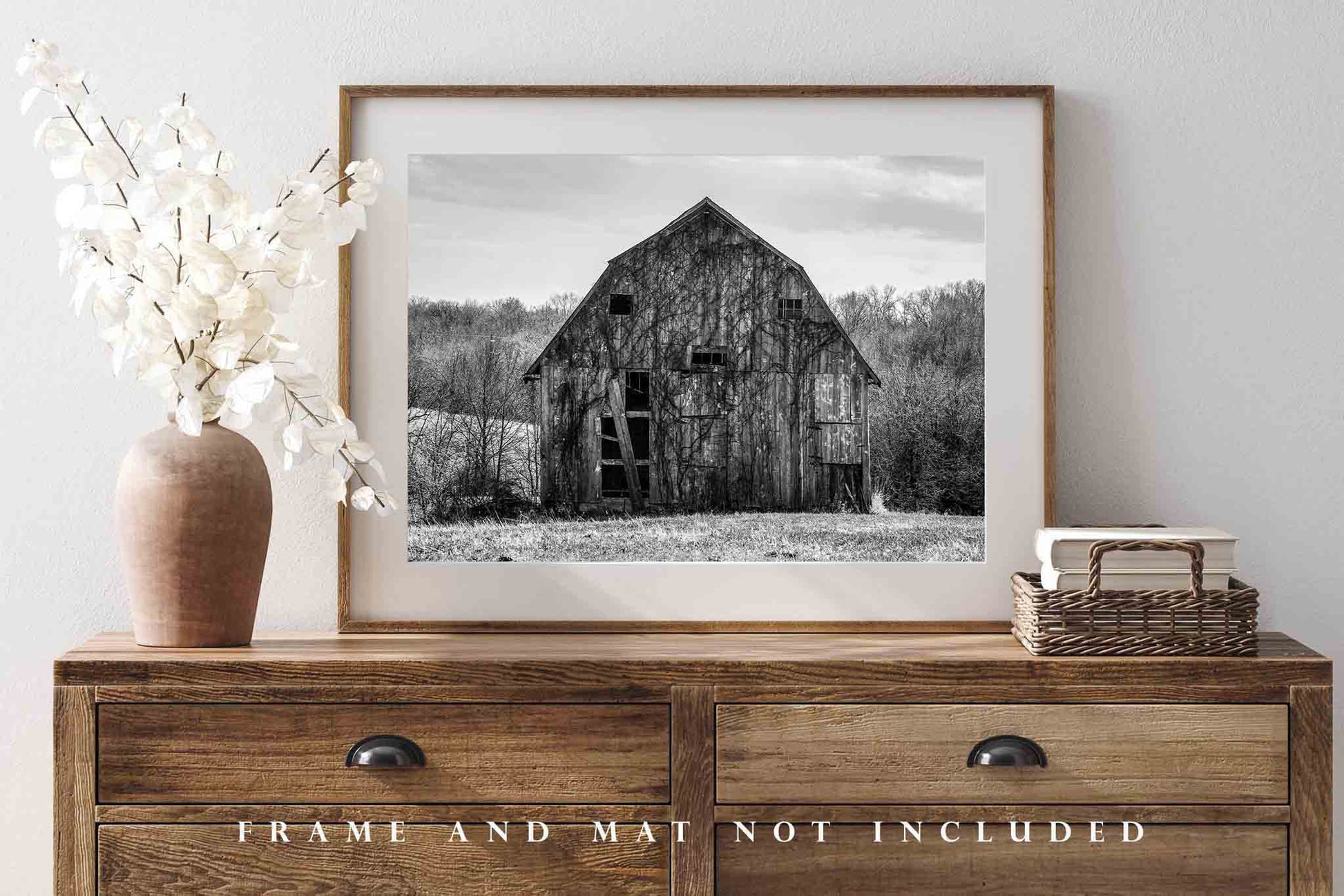 Barn Photography Print | Black and White Picture | Farm and Country Wall Art | Missouri Landscape Photo | Farmhouse Decor | Not Framed