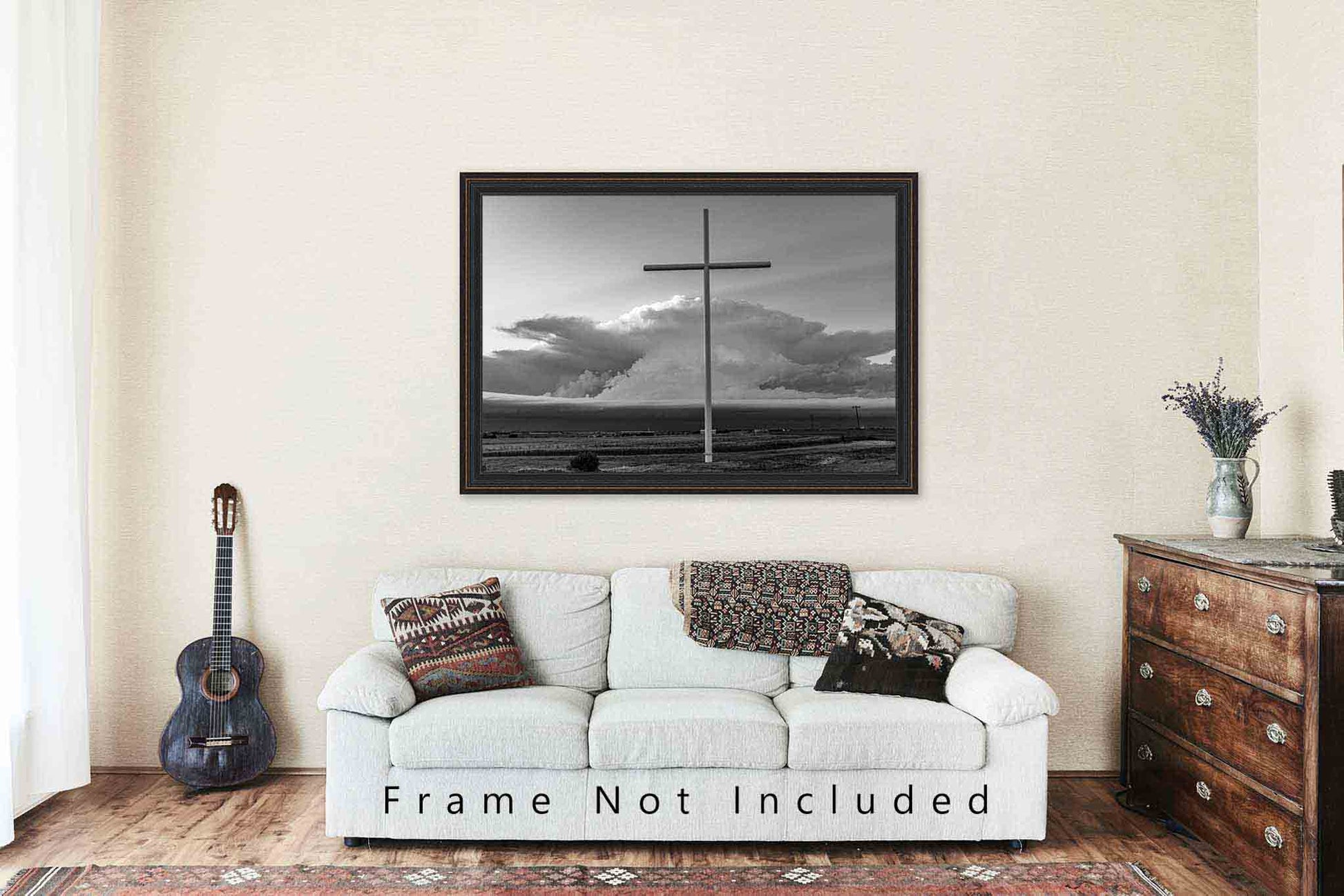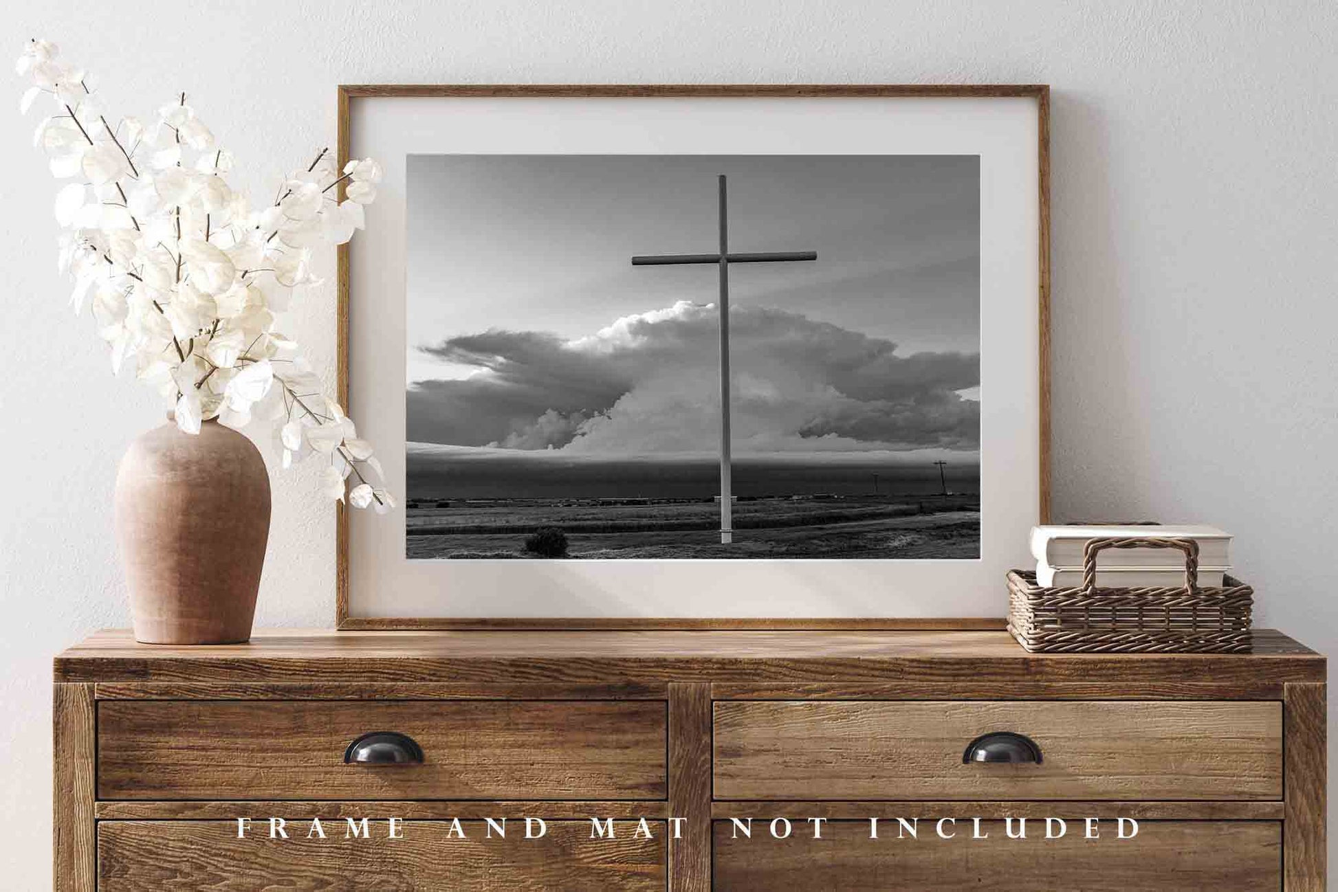 Cross Photography Print | Storm Picture | Black and White Wall Art | Oklahoma Photo | Spiritual Decor | Not Framed