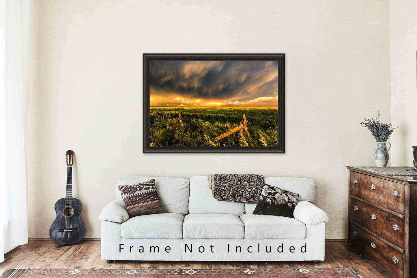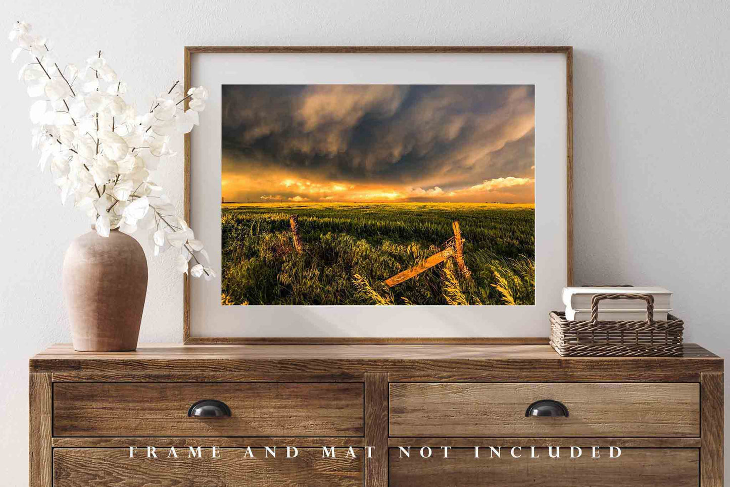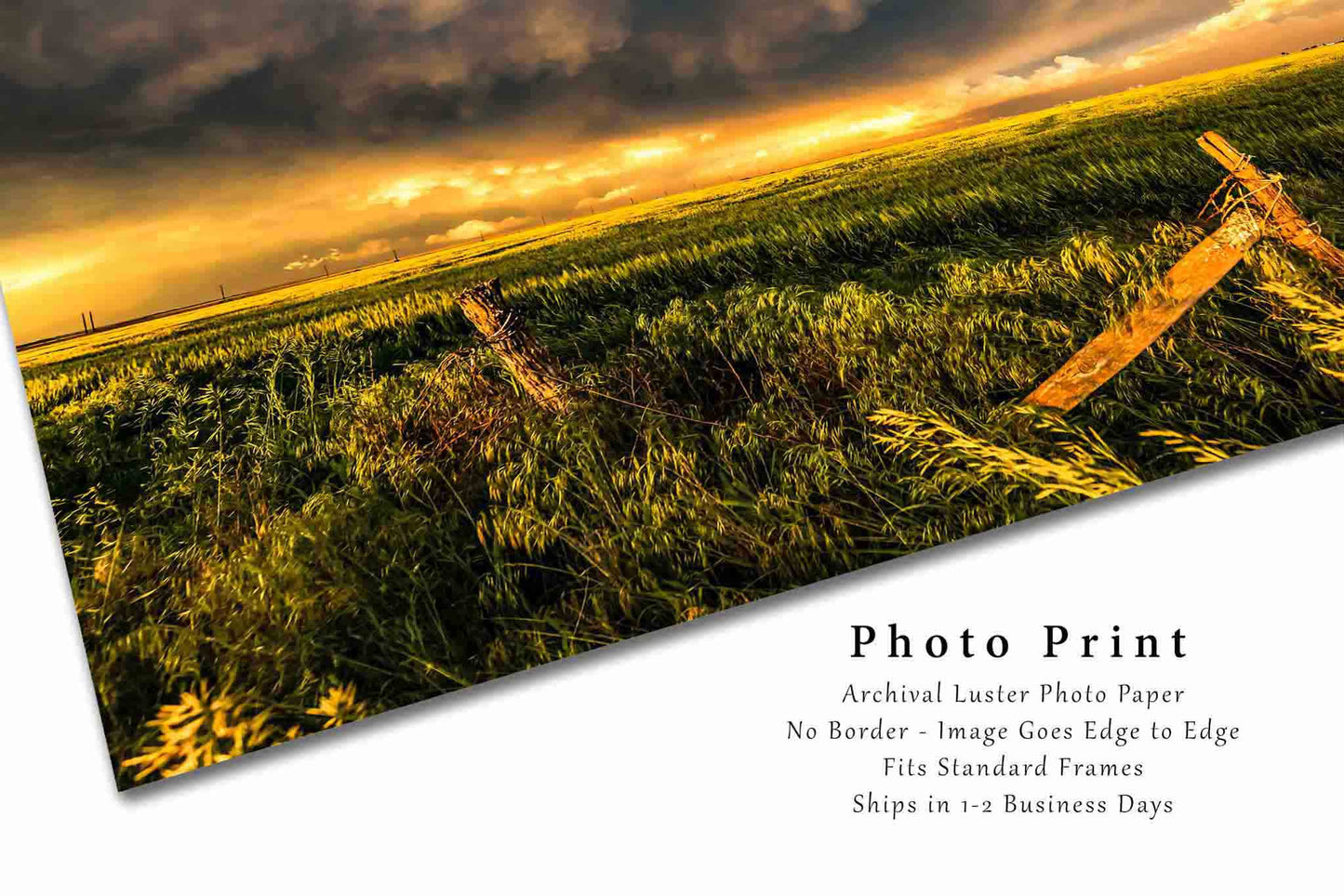 Fence Post and Wheat Field Photography Print | Stormy Sky Picture | Country Wall Art | Kansas Photo | Farmhouse Decor | Not Framed