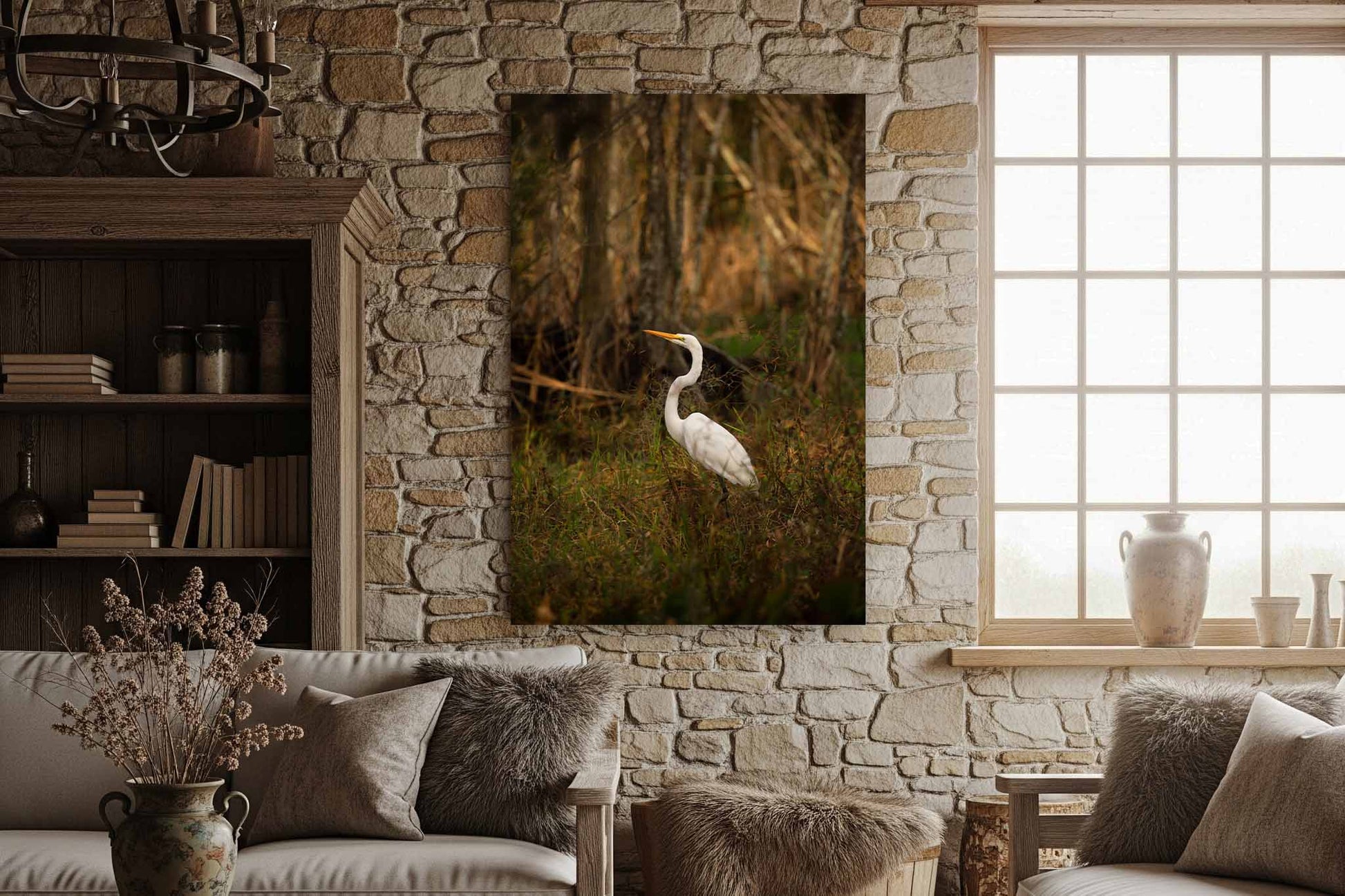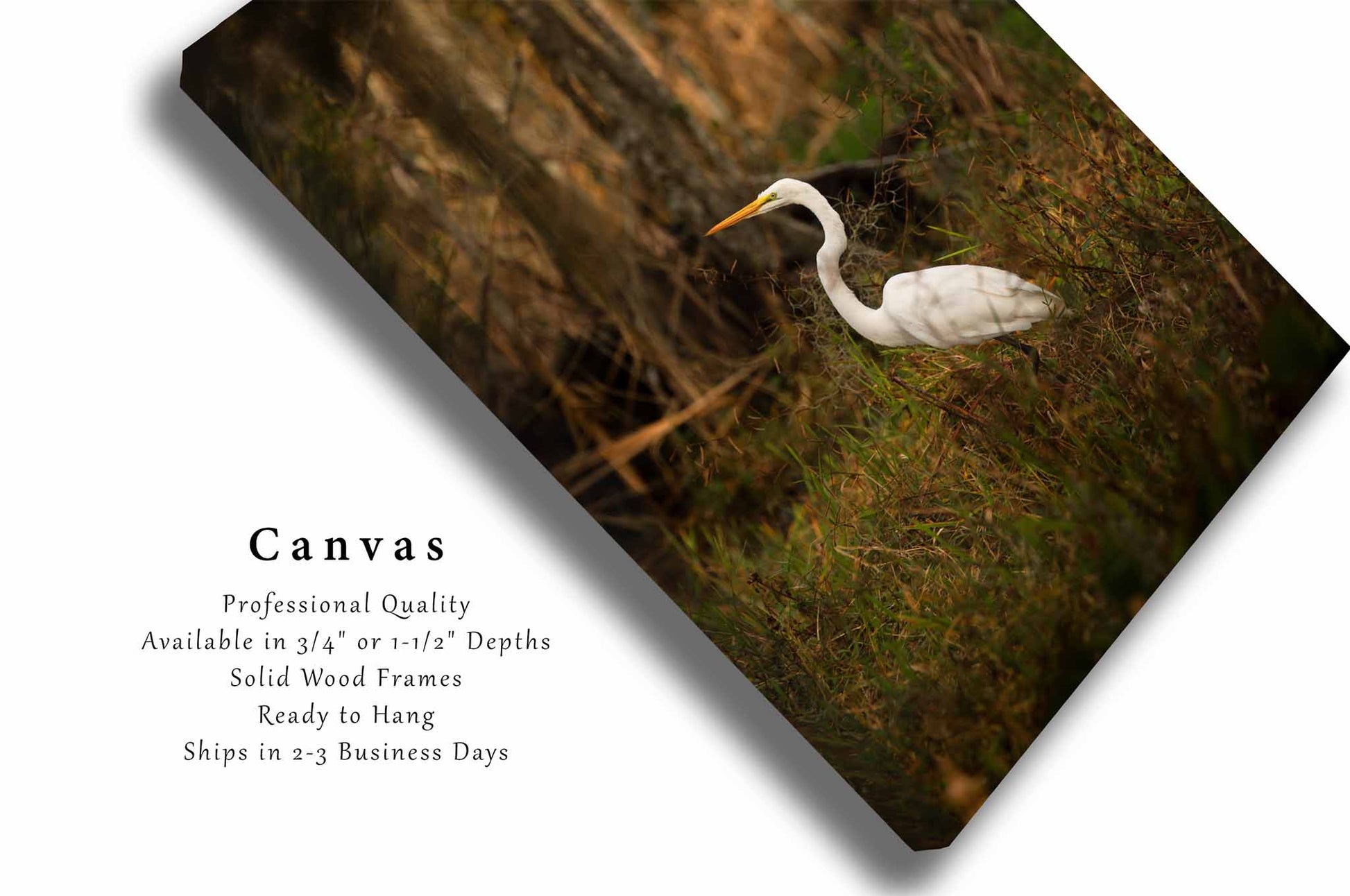 Great Egret Canvas Wall Art | Louisiana Swamp Water Bird Vertical Bayou Wildlife Gallery Wrap Photography Decor