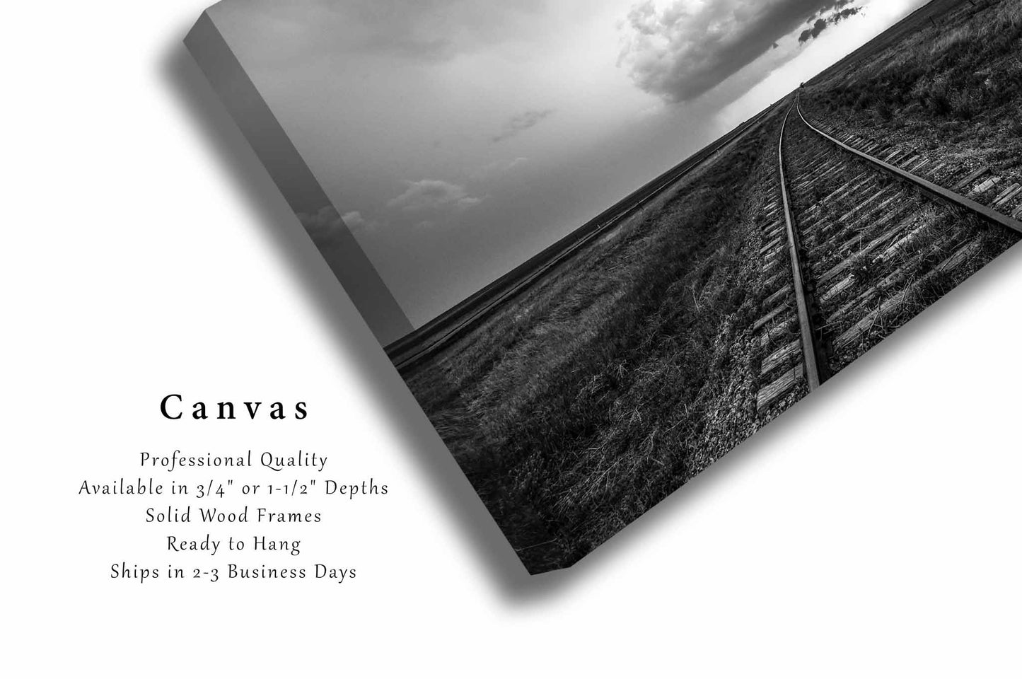 Storm Canvas | Black and White Gallery Wrap | Kansas Photography | Train Tracks Wall Art | Railroad Decor | Ready to Hang
