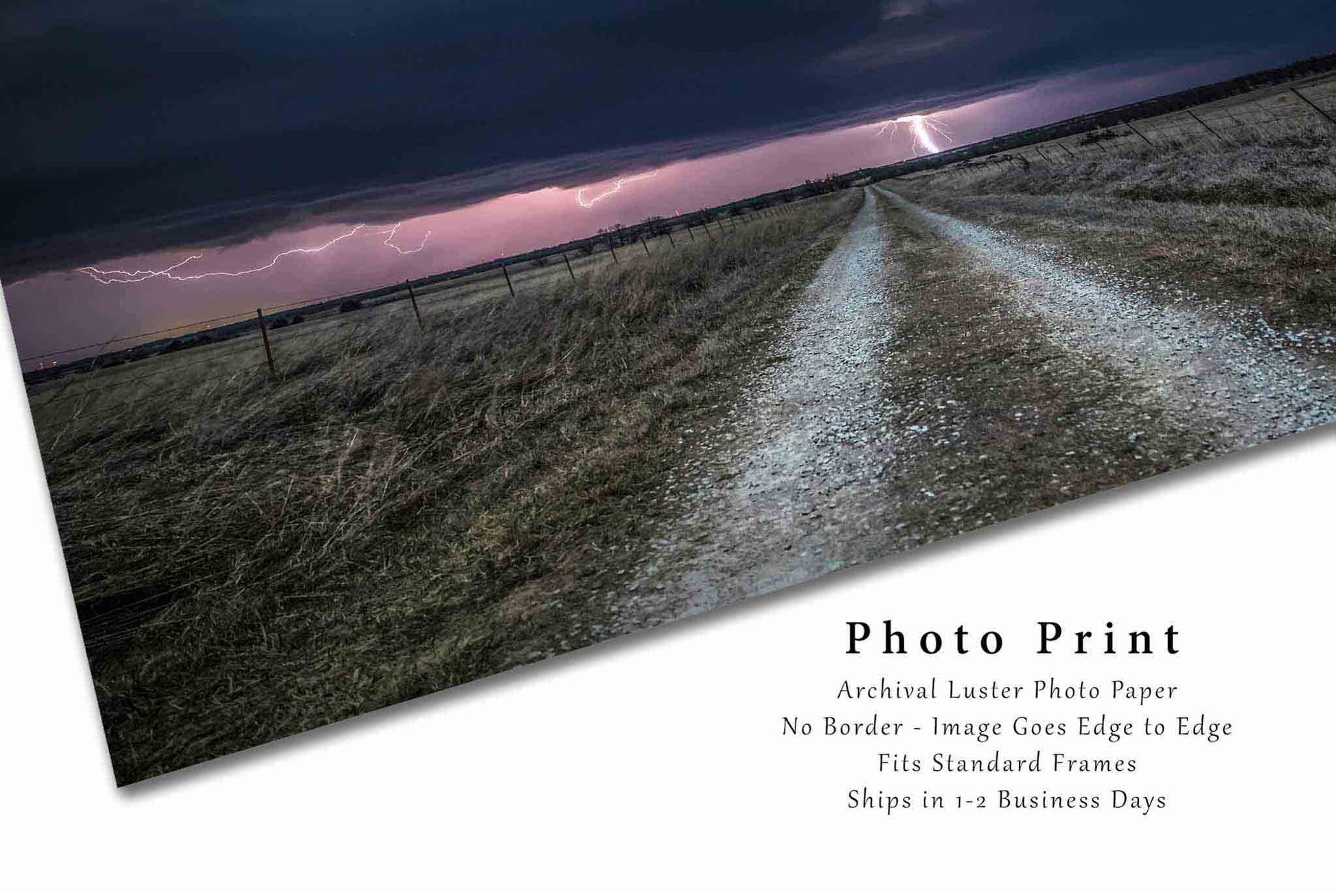Stormy Night Photography Print | Lightning Down Country Road Picture | Thunderstorm Wall Art | Kansas Photo | Weather Decor | Not Framed