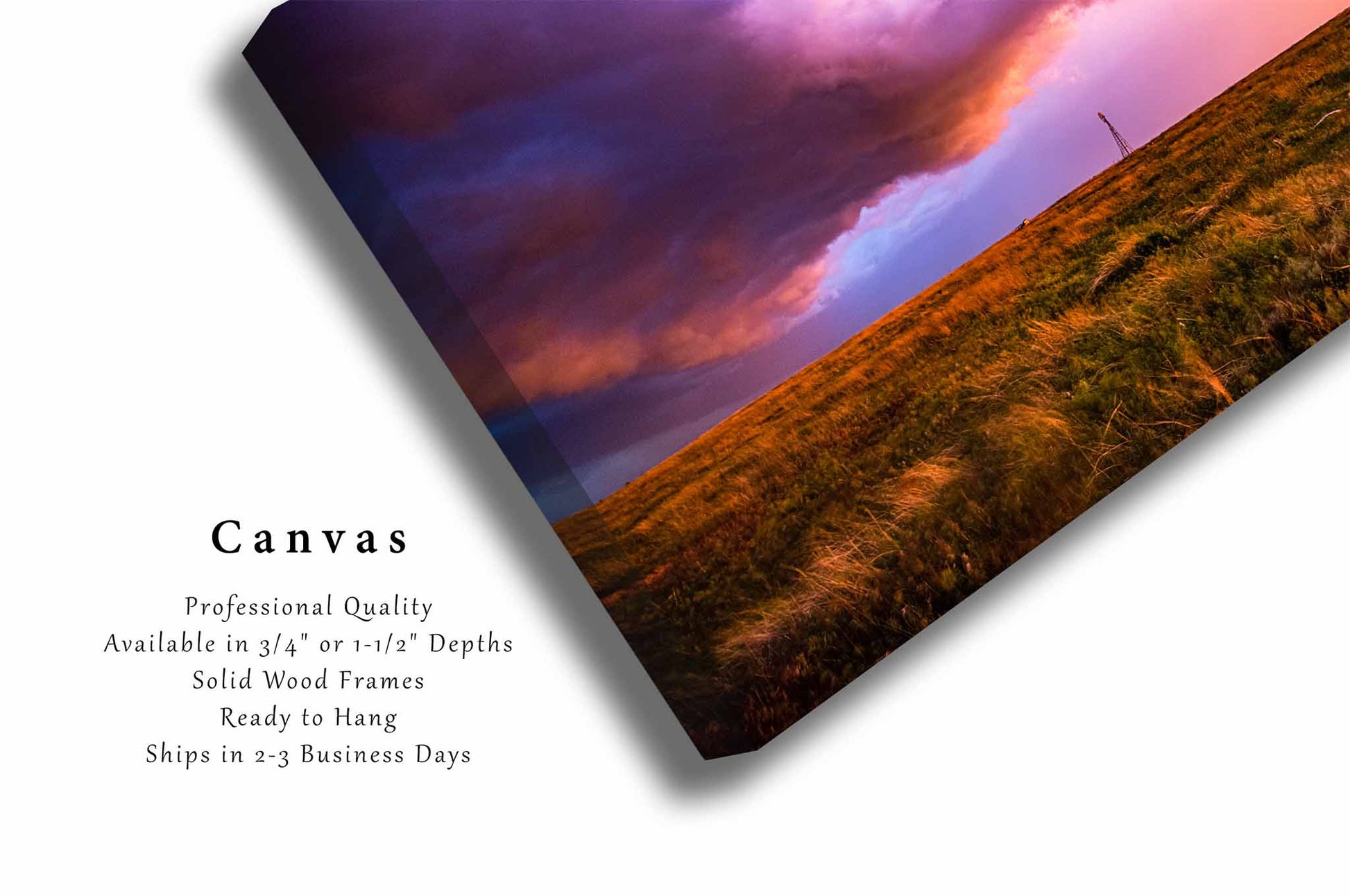 Stormy Sky Canvas | Old Windmill Gallery Wrap | Storm Clouds Photography | Oklahoma Landscape Wall Art | Weather Decor | Ready to Hang