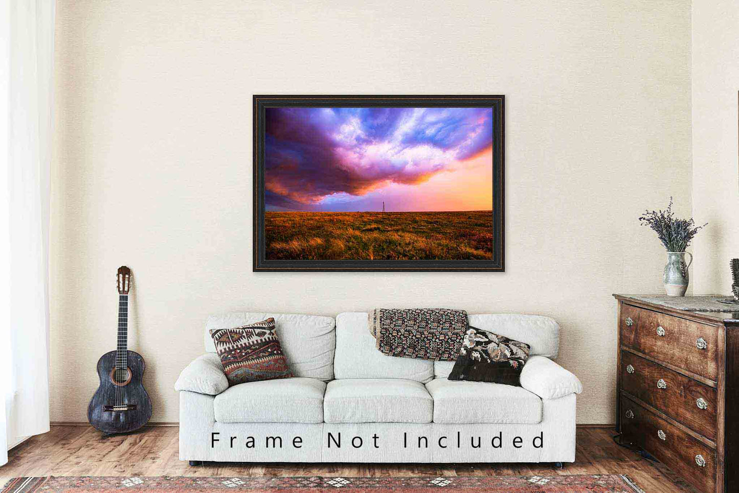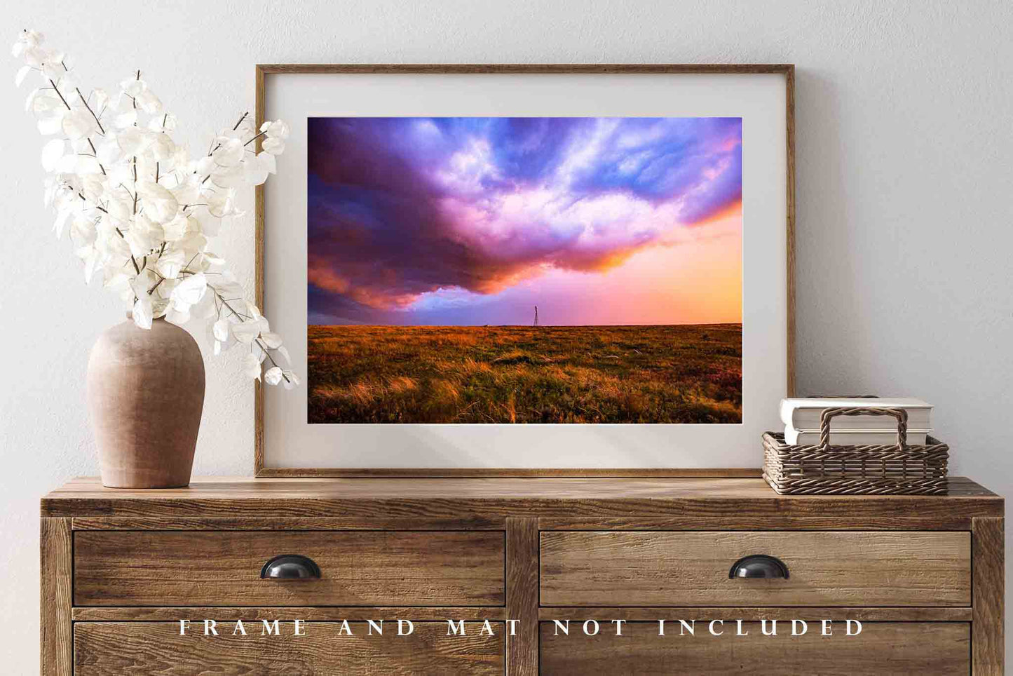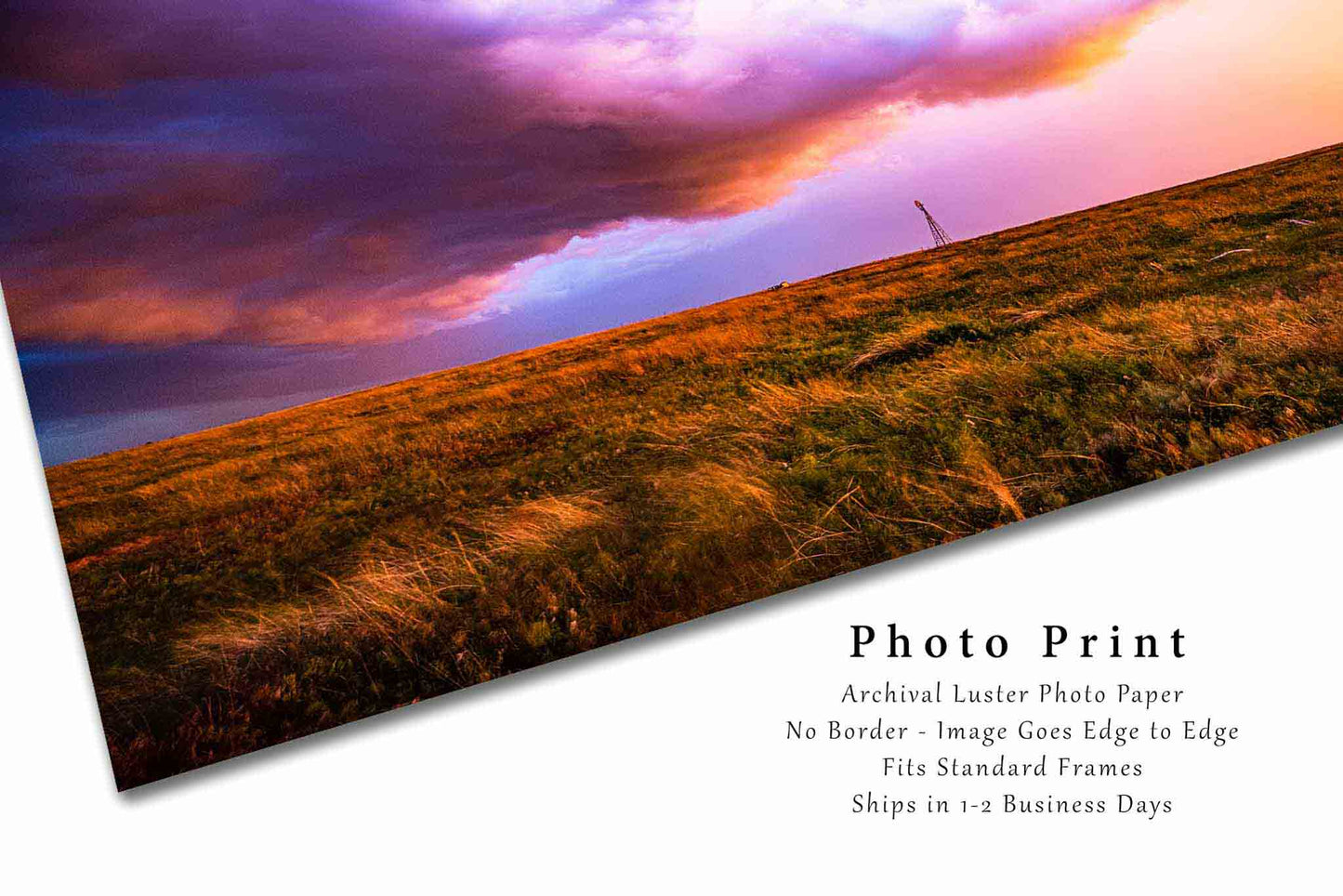 Stormy Sky Photography Print | Old Windmill Picture | Storm Clouds Wall Art | Oklahoma Landscape Photo | Weather Decor | Not Framed