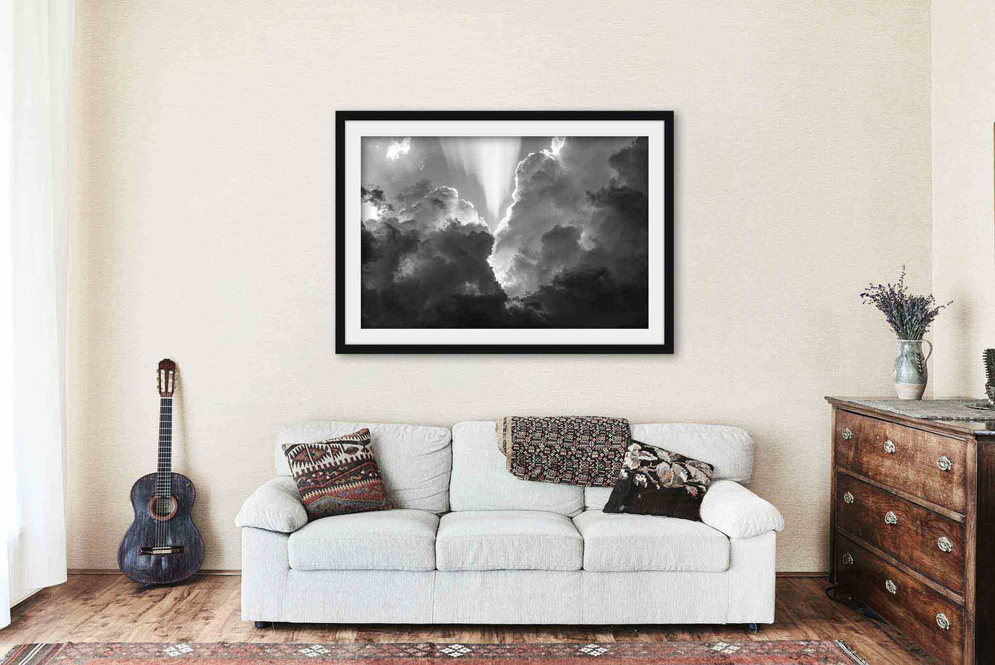Sunbeams Framed and Matted Print | Storm Clouds Photo | Black and White Decor | Oklahoma Sky Photography | Spiritual Wall Art | Ready to Hang