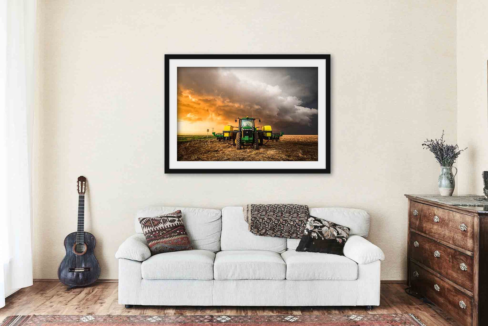 Tractor Framed Print | Kansas Storm Farm Equipment Stormy Sunset Country Wall Art Farmhouse Decor