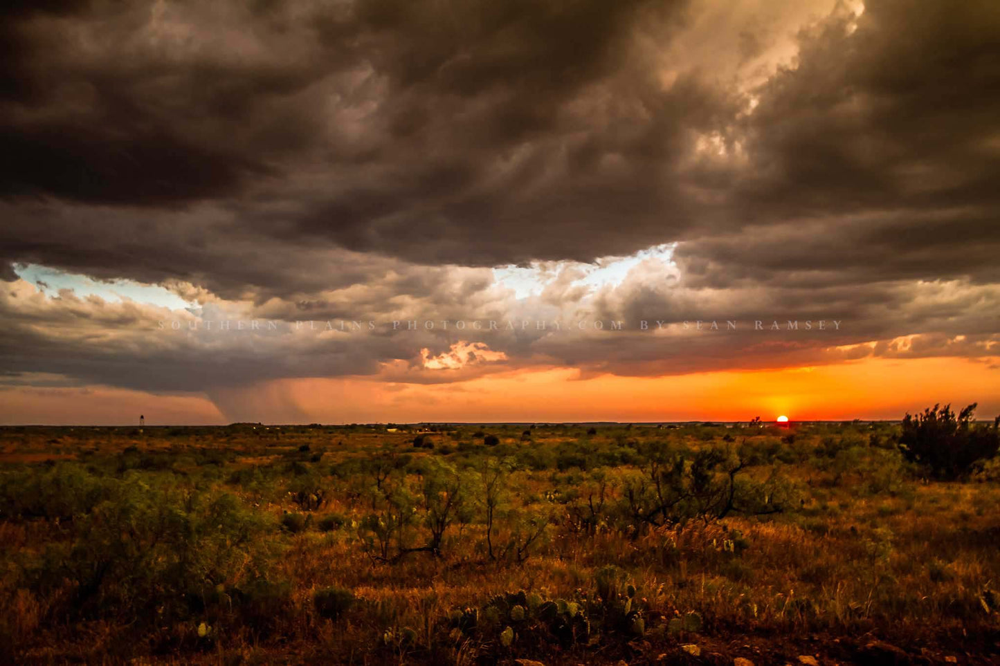 Title: West Texas Sunset. A warm sunset takes place after a stormy day on the plains of West Texas.